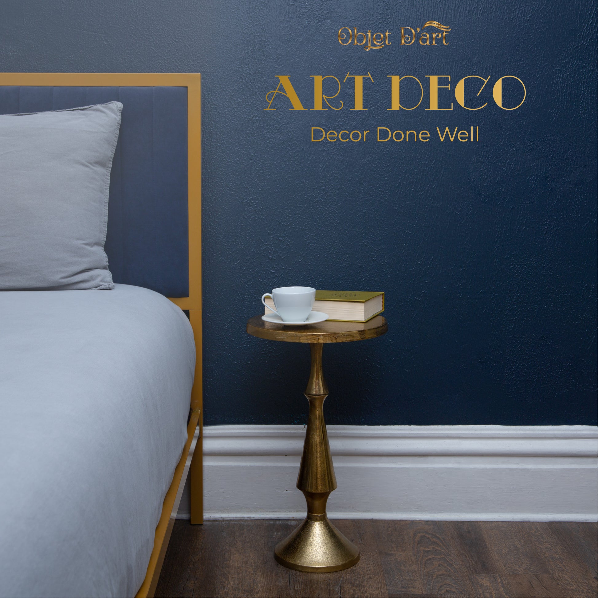 - CLASSIC GOLD ACCENT TABLE There's nothing quite like the classics when it comes to home decor. This gold Art Deco end table effortlessly matches a variety of colors and styles. With a distinctive and graceful silhouette, this design presents a low-key artistic flair. Also comes with a 100% recyclable gift box.